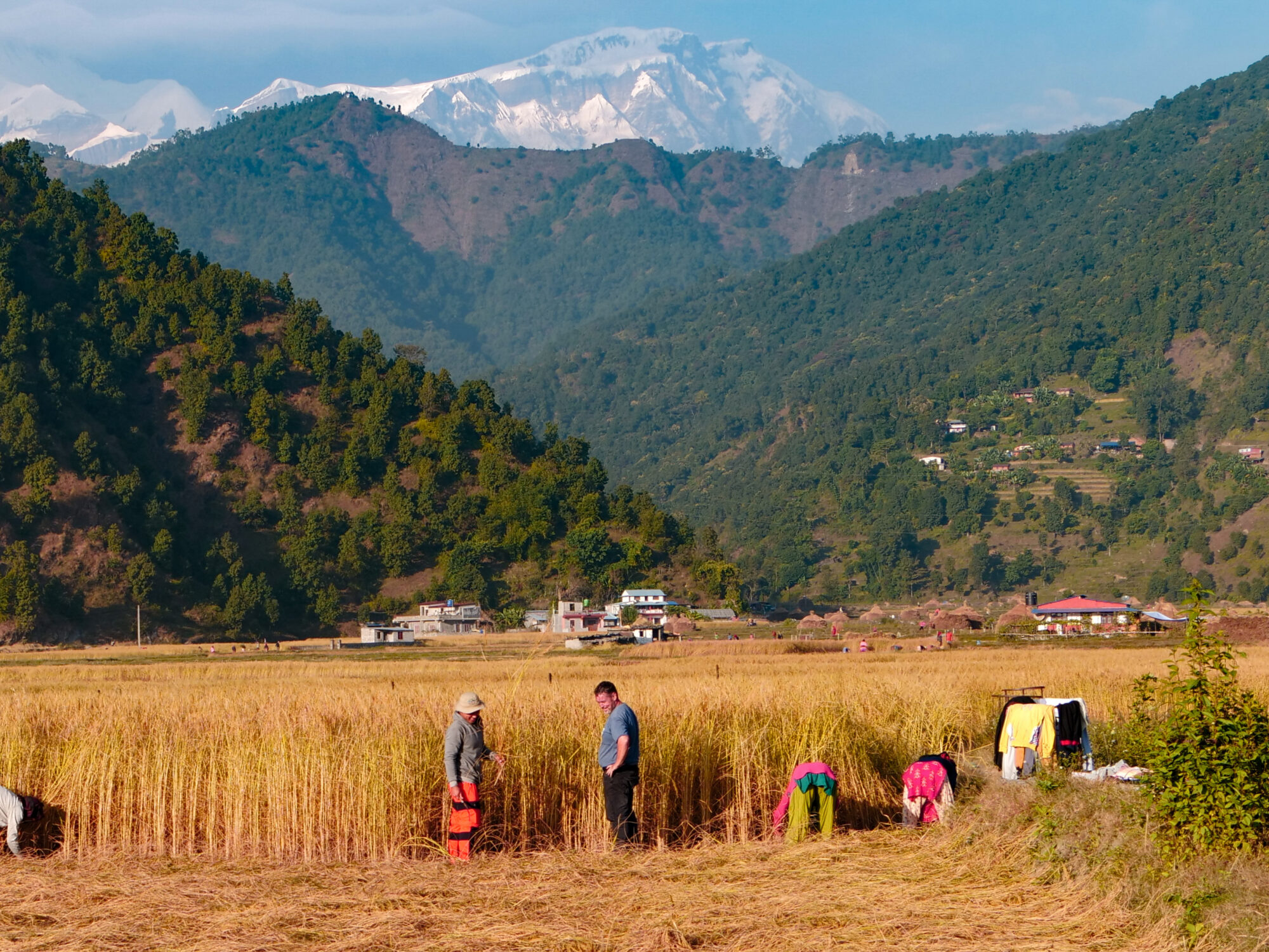 Mange mennesker i Nepal ernærer sig af/ved landbrug. I dag kører vi en tur ud på landet øst for Pokhara og ser på hvad de dyrker og hvordan de lever. I nepal kan man have mange afgrøder på samme mark i løbet af et år, så om de høster eller sår, og hvad de høster eller sår, kan være lidt afhængig af vejret. Ris er hoved-afgrøden der dyrkes 2 gange om året. Dertil kommer majs, hirse, sennepsfrø (til olie), linser, kartofler samt mange andre grøntsager. Af frugter dyrkes Banan, Mango, Papaya, clementiner (suntala). Der er også en god mulighed for at vi får se The og Kaffe planter. Hvis der er høst-aktiviteter, er der sikkert mulighed for at få lov til at være med til det 🙂